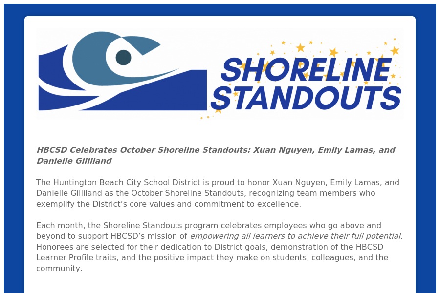 Lamas, and Danielle Gilliland The Huntington Beach City School